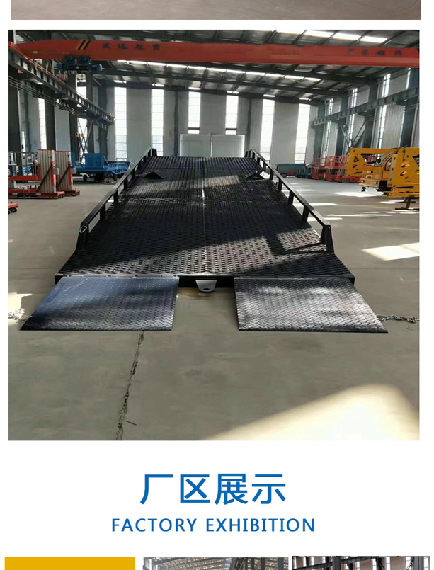 固定式登車橋廣泛應用于碼頭、站臺、倉庫等地。電動登車橋主要作用是貨臺與車輛之間搭起的一座橋。使叉車便利的行使達到裝卸貨的目的,該設備一端與貨臺一樣高,另一段搭在車廂后緣上,并能根據不同的車型及裝車過程中車廂的變化,自動調節(jié)高度。